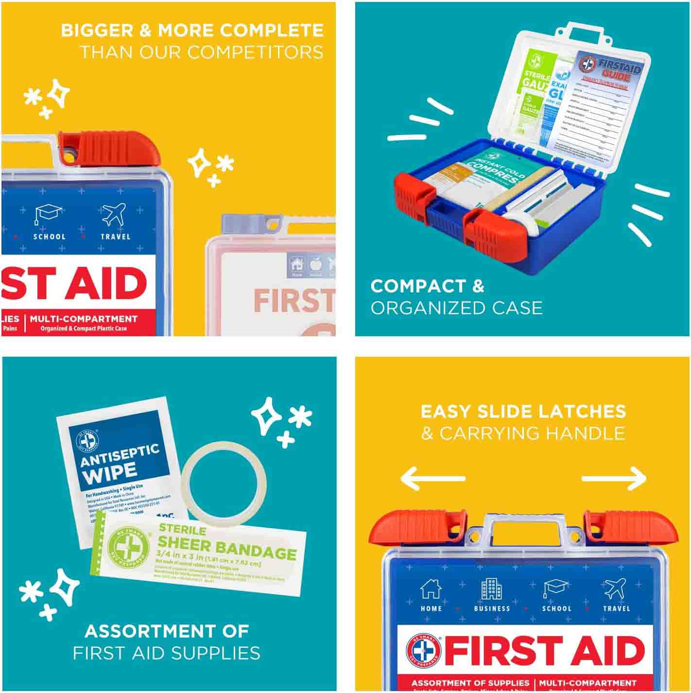 180 Piece Plastic First Aid Kit antar en dubbel push-pull smidig switch och en genomskinlig design, vilket gör det enkelt att se medicinska förnödenheter. Samtidigt finns det fack på två våningar inuti, som kan klassificeras för olika läkemedel för enkel åtkomst.