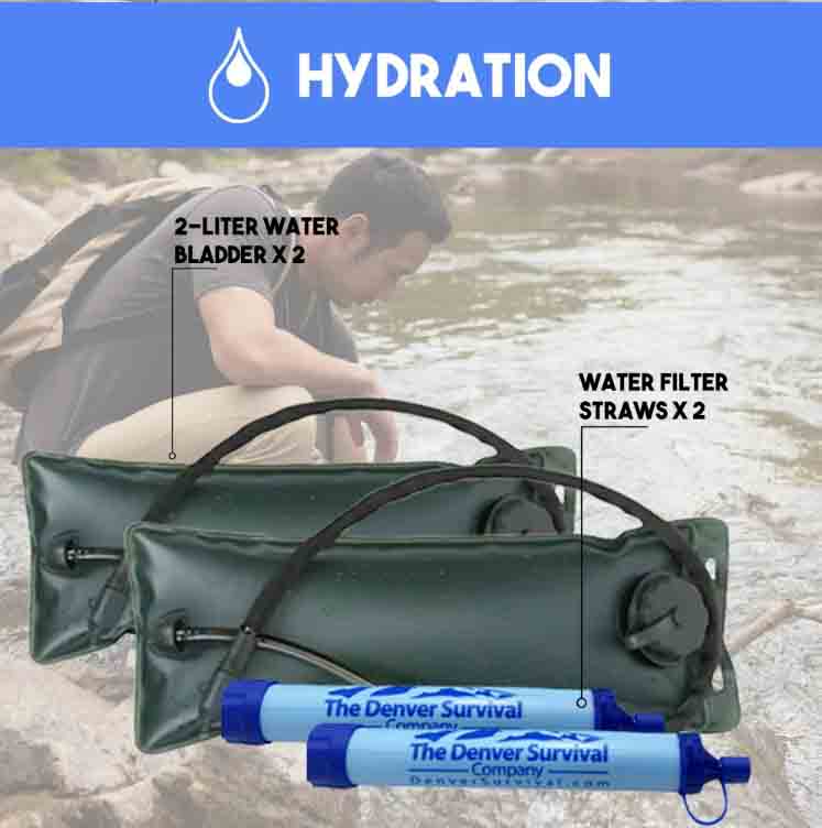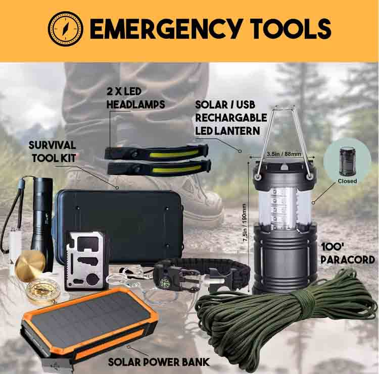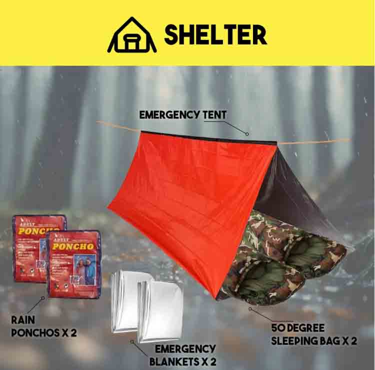 72 timmars överlevnad av ryggsäck för 2 personer innehåller medicinska första hjälpen leveranser och praktiska verktyg för utomhusresor, camping och andra scenarier och uppfyller behoven av medicinskt och utomhus kul. Nödöverlevnadspåsen har ett spänne som kan hängas på bältet eller ryggsäcken, vilket gör det enkelt att bära. Interna fack för enkel åtkomst.