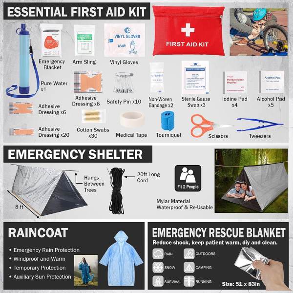 Allt-i-ett Tactical Survival Backpack First Aid Kit är designat för utomhusäventyrare, nödberedskap och katastrofinsatser. Förpackad i en hållbar ryggsäck i militärstil, kombinerar den viktiga överlevnadsverktyg, första hjälpen-tillbehör och nödutrustning i en komplett lösning.