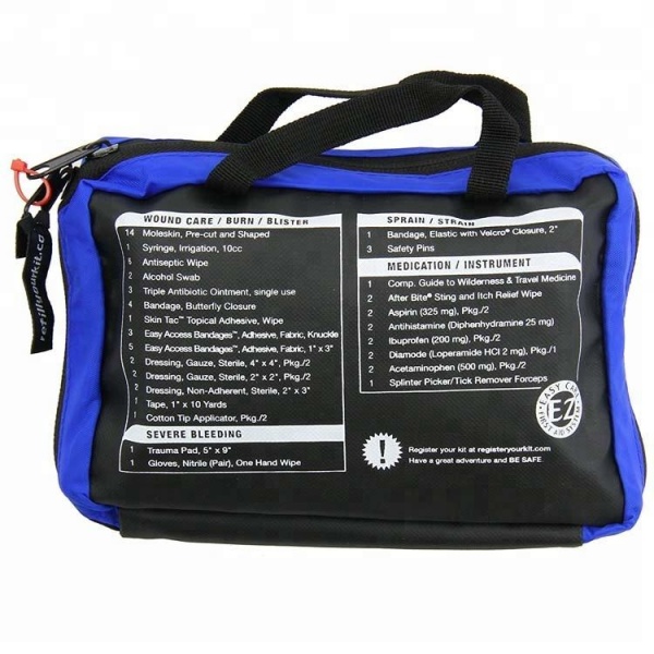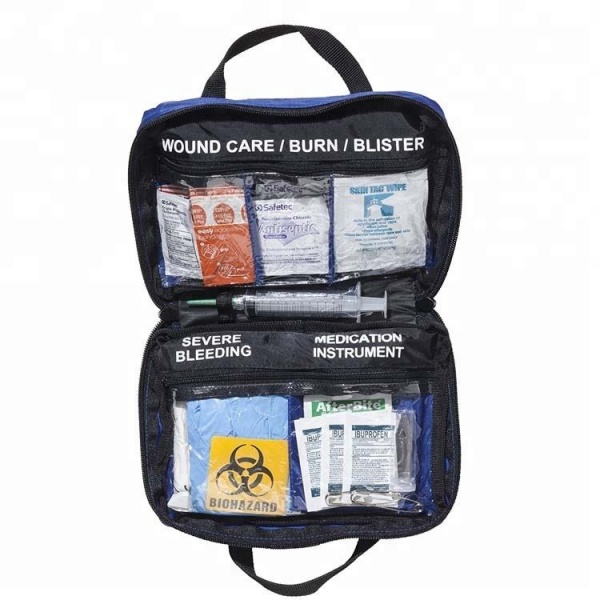 KategoriArtiklar Inkluderade Sterila förbandGazekuddar, sterila sårförband, absorberande kuddarBandage & WrapsElastiskt bandage, triangelbandage, tejp SårvårdBlandade självhäftande bandage, spritkuddar, rengöringsservetter Nödverktyg Sax, pincett, engångshandskar, engångsskyddsnålar, handskar medicinsk tejp, sårplåster