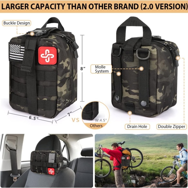 Yiwu Kebon Healthcare Co., Ltd tillhandahåller OEM/ODM-anpassning för militär-, polis- och räddningsorganisationer. Väskans färg, logotyp och innerinnehåll kan anpassas helt enligt kundens specifikationer eller nationella försvarsstandarder.