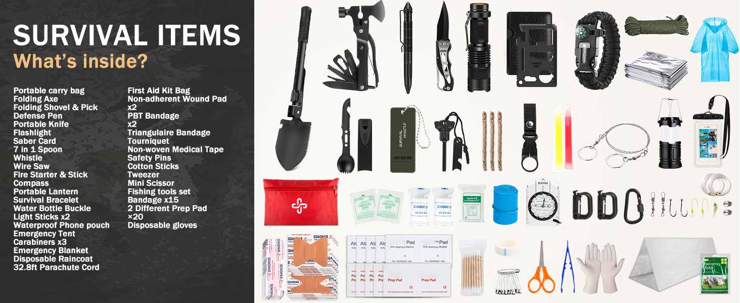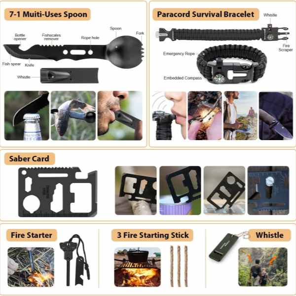 Ultimate Outdoor Survival Kit är konstruerat för vandrare, campare, räddningsteam och alla som förbereder sig för oväntade nödsituationer utomhus. Med hjälp av hållbara, väderbeständiga material och komponenter av professionell kvalitet, detta