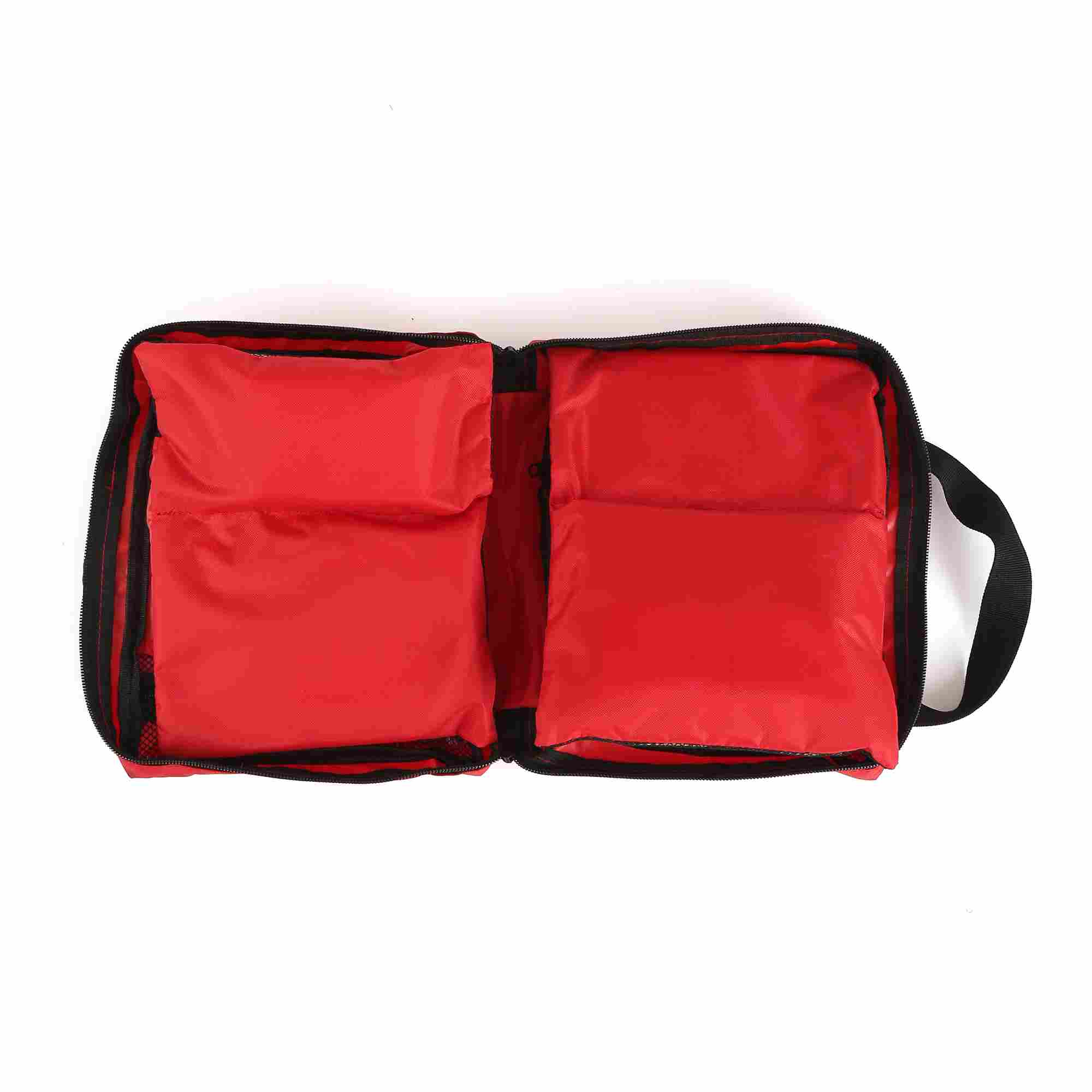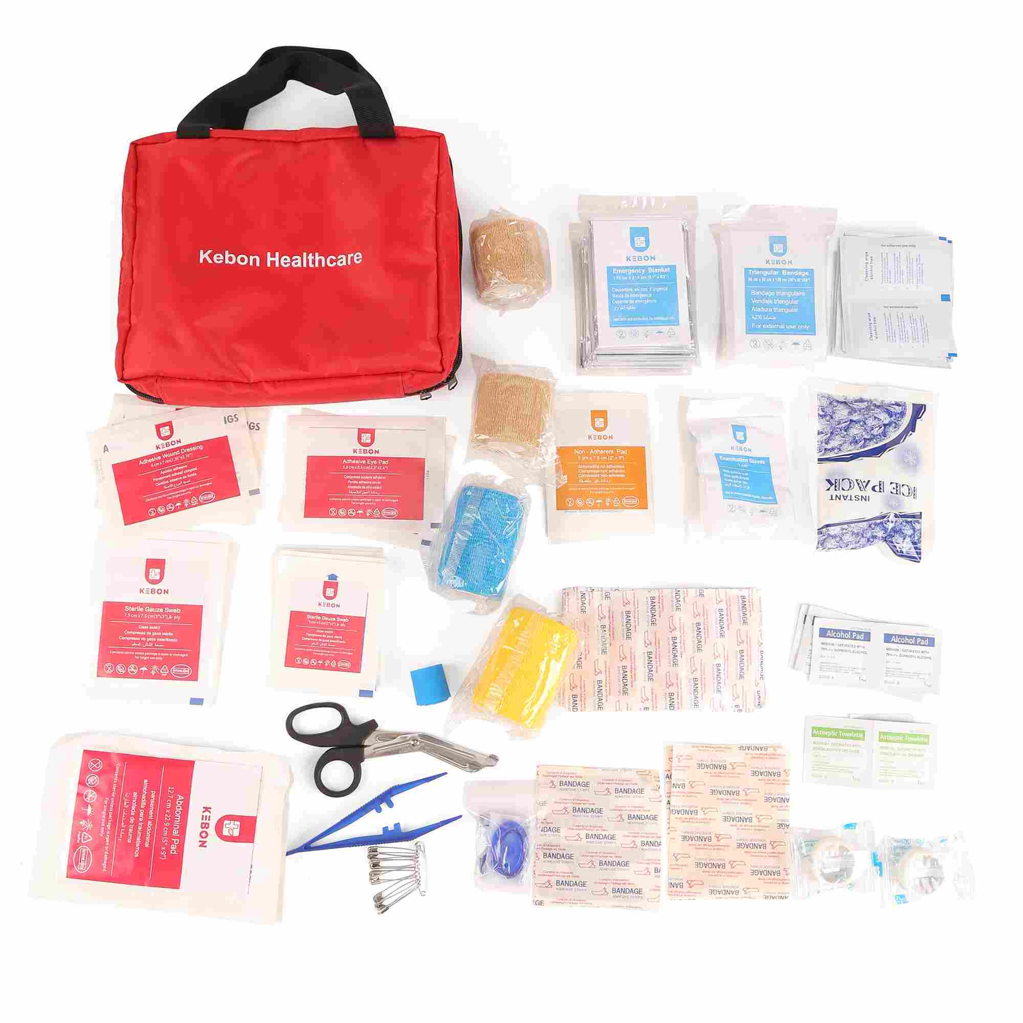 KategoriArtiklar Inkluderade Sterila förbandGazekuddar, sterila sårförband, absorberande kuddarBandage & WrapsElastiskt bandage, triangelbandage, tejp SårvårdBlandade självhäftande bandage, spritkuddar, rengöringsservetter Nödverktyg Sax, pincett, engångshandskar, engångsskyddsnålar, handskar medicinsk tejp, sårplåster