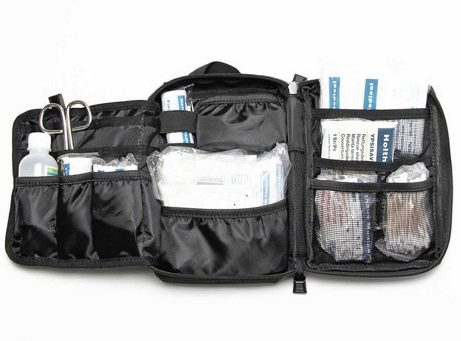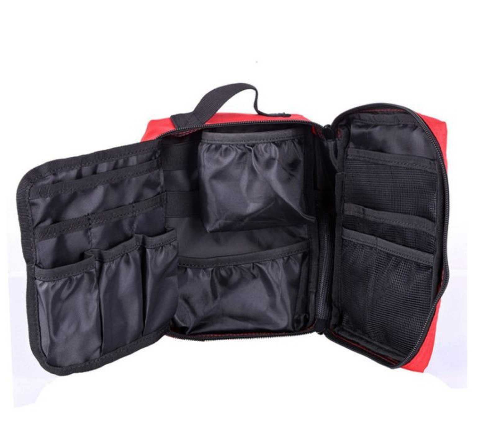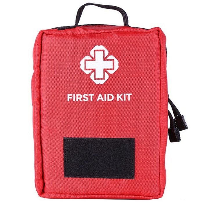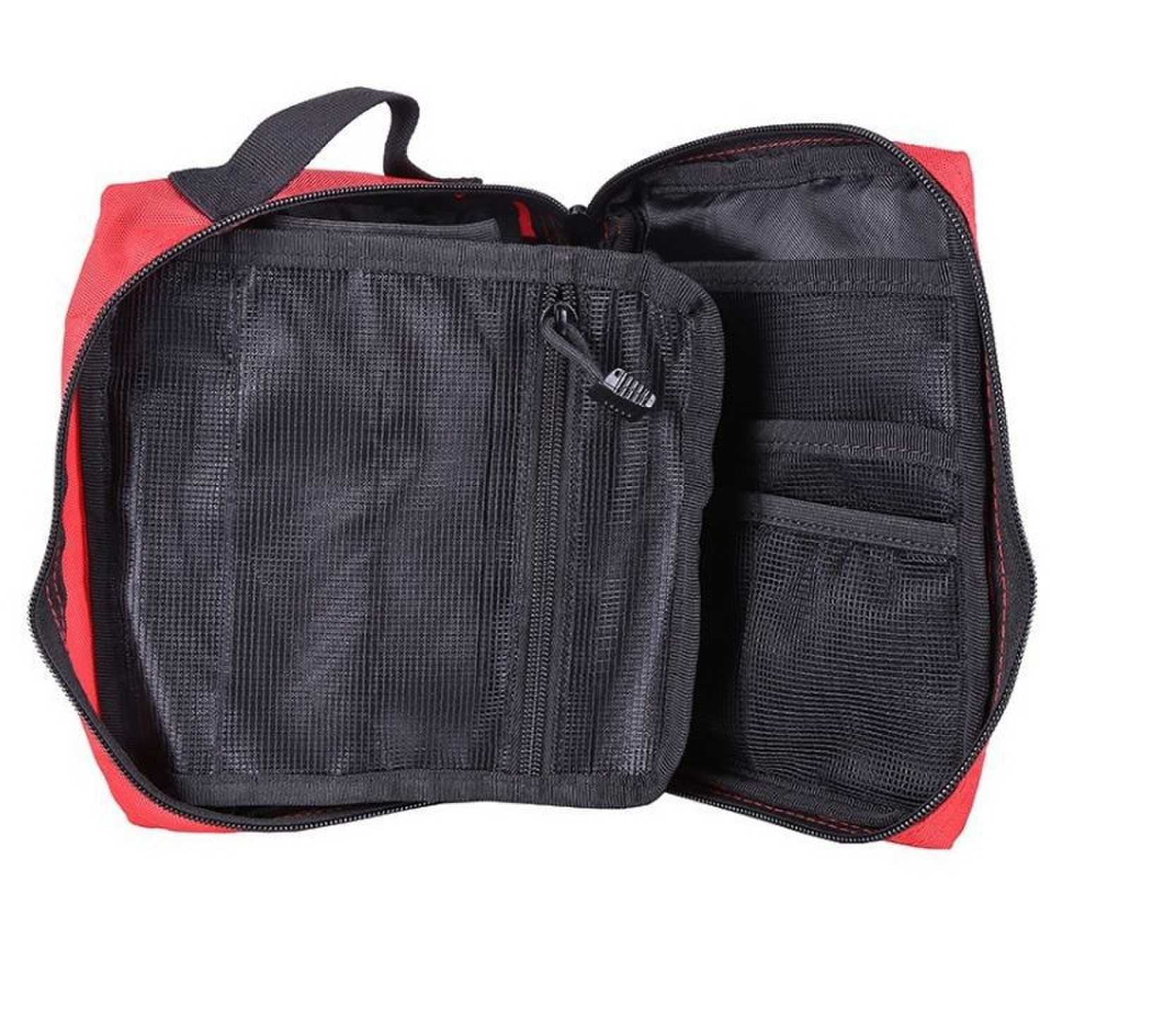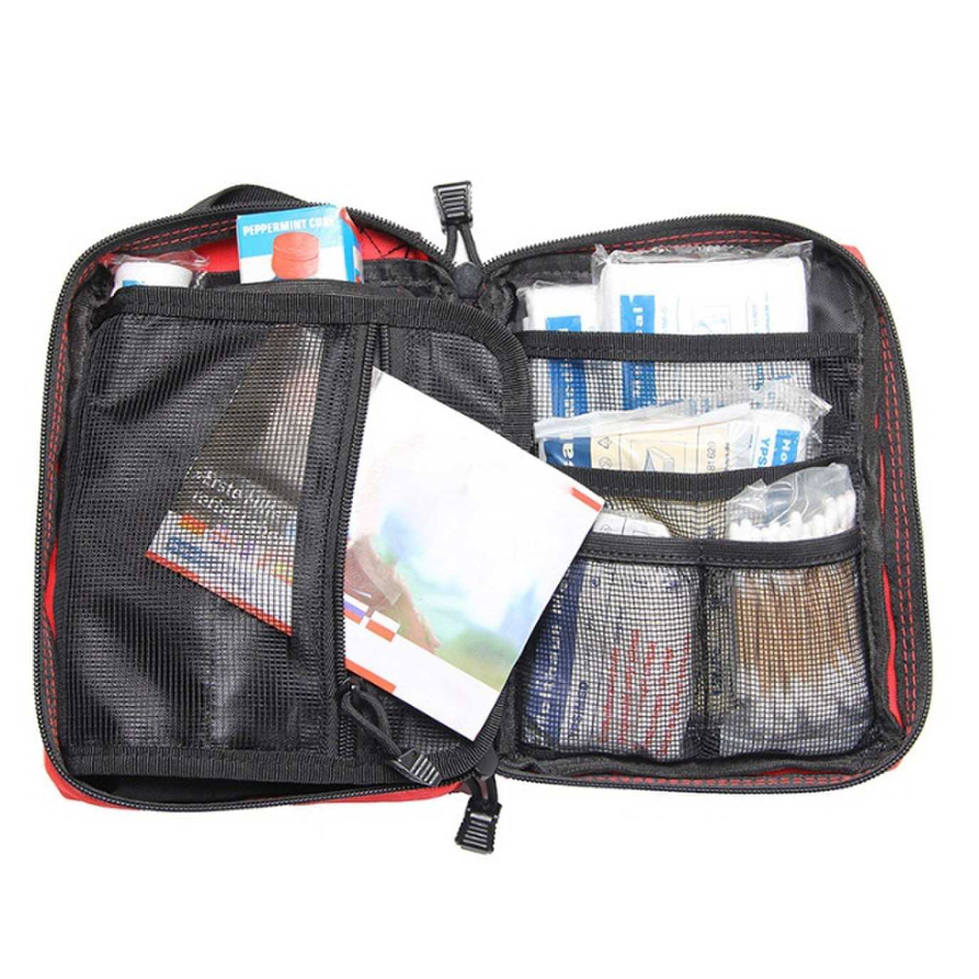 Portable First Aid Bag : Möt vår Essential First - Aid Kit. Dess röda fodral med ett vitt kors sticker ut för lätt att hitta. Packat med band - AIDS, antiseptika, pincett och mer är det redo för mindre skador. Tja - organiserade fack säkerställer snabb åtkomst. Hållbart och bärbart, det är perfekt för hem-, resor och utomhusäventyr, vilket ger dig sinnesfrid.